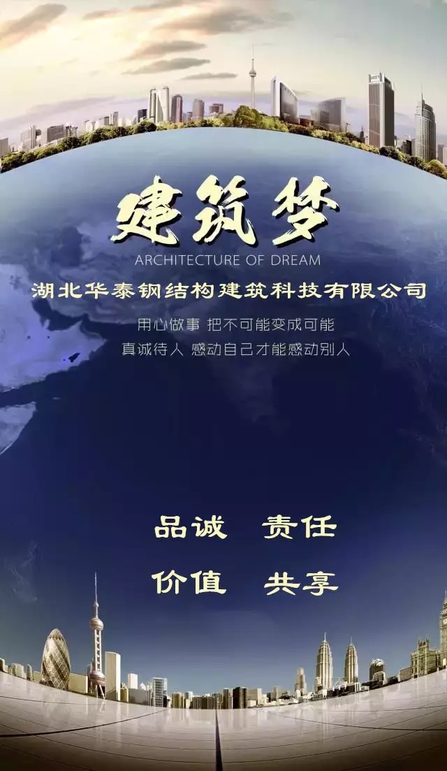 華泰鋼構(gòu)地處中國明星城市、曹禺故里龍蝦之鄉(xiāng)的潛江市園林科技工業(yè)園,漢宜高速、滬蓉高鐵、318國道貫穿全境,交通便利,區(qū)位優(yōu)勢明顯,熱忱歡迎社會各界朋友光臨我公司考察、洽談業(yè)務(wù)。我公司秉承“品誠、責任、價值、共享”的企業(yè)文化理念,愿與社會各界真誠合作,共創(chuàng)鋼結(jié)構(gòu)事業(yè)美好未來。